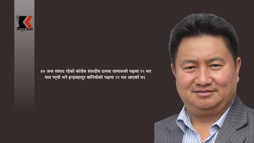 ३७ जना सांसद रहेको कांग्रेस संसदीय दलमा तामाङको पक्षमा १५ मत मात्र पर्यो भने इन्द्रबहादुर बानियाँको पक्षमा २२ मत आएको छ। दलमा बहुमत गुमाएसँगै तामाङको मुख्यमन्त्री पद पनि संकटमा परेको छ।