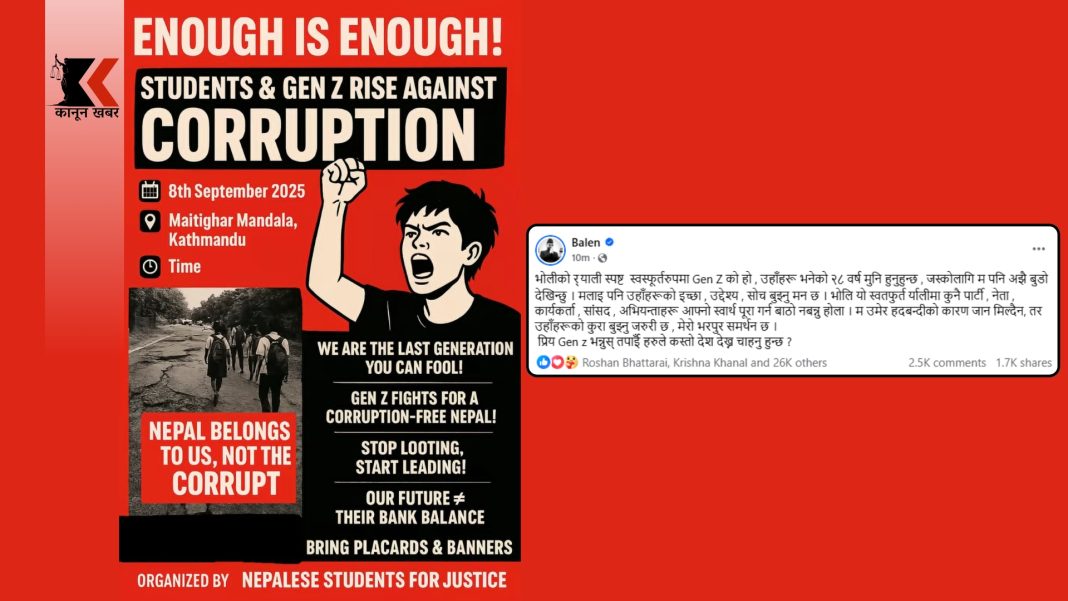 काठमाडौँ । काठमाडौं महानगरपालिकाका मेयर बालेन्द्र शाह (बालेन) ले सोमबार आयोजना हुने ‘जेनजी’ पुस्ताको भ्रष्टाचारविरोधी प्रदर्शनलाई खुलेर समर्थन जनाएका छन्।