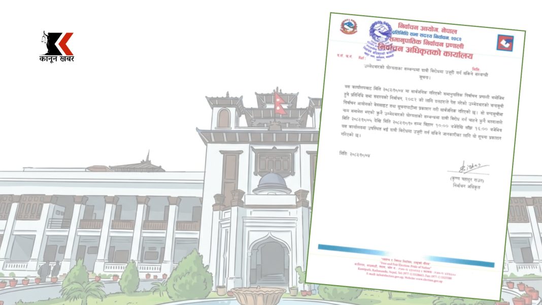 बन्दसूचीमा समावेश उम्मेदवारको योग्यता वा कानुनी हैसियतबारे दाबी–विरोध गर्न चाहने मतदाताले माघ १० गतेभित्र निर्वाचन आयोगमा निवेदन दिन सक्ने व्यवस्था गरिएको आयोगले जनाएको छ। आयोगले तोकिएको समयसीमाभित्र प्राप्त निवेदनहरू अध्ययन गरी आवश्यक निर्णय गर्नेछ।
