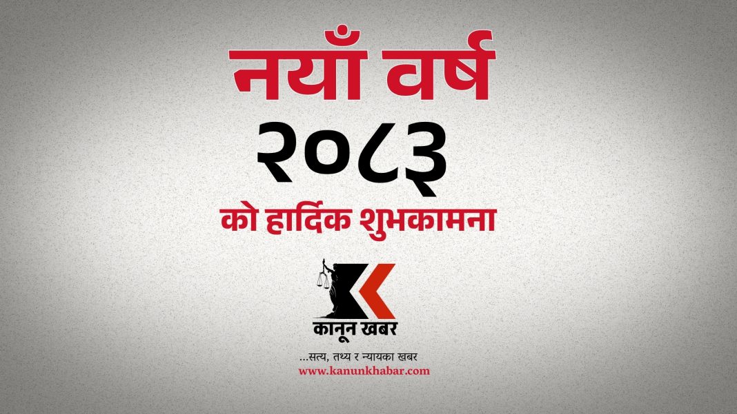 शुभकामना कानून खबर बैशाख १, २०८३ Previous articleकानुनमन्त्री सोविता गौतमको सम्पत्ति साढे १० लाख बैंक ब्यालेन्स र १५ तोला सुनNext articleअनुसन्धानबारे भ्रामक सूचना नफैलाउन प्रहरीको चेतावनी सम्बन्धित समाचार पूर्वमन्त्री दीपक खड्कालाई थुनामा राख्नुको कारणसहित मिसिल बुझाउन सर्वोच्चको आदेश उच्चपदस्थ र राजनीतिक नेतृत्वको सम्पत्ति छानबिन हुने, राजेन्द्र भण्डारीको नेतृत्वमा आयोग गठन दलहरूको साझा एजेण्डा समेटेर सरकारले ल्यायो ‘राष्ट्रिय प्रतिबद्धतापत्र’ कानुनमन्त्री सोविता गौतमको सम्पत्ति साढे १० लाख बैंक ब्यालेन्स र १५ तोला सुन ताजा न्यूज सञ्चार मन्त्रालयद्वारा कर्मचारीका लागि ९ बुँदे आचारसंहिता जारी, सेवा प्रवाहमा कडाइ कानून खबर - रवि लामिछाने जोडिएको सम्पत्ति शुद्धीकरण मुद्दा: छिटो पेसी तोक्न माग गर्दै सर्वोच्चमा निवेदन कानून खबर - पूर्वमन्त्री दीपक खड्कालाई थुनामा राख्नुको कारणसहित मिसिल बुझाउन सर्वोच्चको आदेश कानून खबर - जेनजी आन्दोलन प्रतिवेदन कार्यान्वयनको तयारी: सुरक्षा निकायको अध्ययन गर्न प्रेमराज कार्कीको नेतृत्वमा समिति कानून खबर - उच्चपदस्थ र राजनीतिक नेतृत्वको सम्पत्ति छानबिन हुने, राजेन्द्र भण्डारीको नेतृत्वमा आयोग गठन कानून खबर -