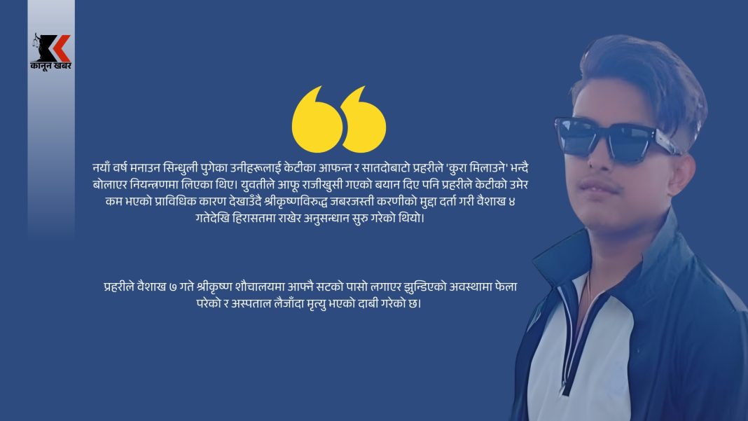 ललितपुरमा गाडी चलाउँदै आएका श्रीकृष्ण र खोटाङकी १७ वर्षीया निर्जला मगरबीच करिब दुई वर्षदेखि प्रेम सम्बन्ध रहेको र उनीहरूले गत चैत २८ गते राजीखुसी विवाह गरेका थिए। नयाँ वर्ष मनाउन सिन्धुली पुगेका उनीहरूलाई केटीका आफन्त र सातदोबाटो प्रहरीले ‘कुरा मिलाउने’ भन्दै बोलाएर नियन्त्रणमा लिएका थिए। युवतीले आफू राजीखुसी गएको बयान दिए पनि प्रहरीले केटीको उमेर कम भएको प्राविधिक कारण देखाउँदै श्रीकृष्णविरुद्ध जबरजस्ती करणीको मुद्दा दर्ता गरी वैशाख ४ गतेदेखि हिरासतमा राखेर अनुसन्धान सुरु गरेको थियो।