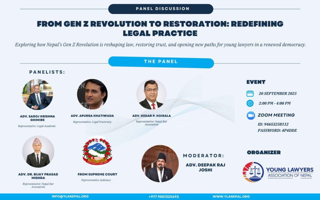 काठमाडौं । योङ लयर्स एसोसिएसन अफ नेपालले ‘जेन-जी आन्दोलनपछि अदालतको अभ्यास कसरी चल्छ ?’ विषयक कार्यक्रम आयोजना गरेको छ। कार्यक्रममा “जेन–जी आन्दोलनदेखि पुनर्स्थापना : कानूनी अभ्यासको पुनर्परिभाषा” शीर्षकमा छलफल गरिएको हो।