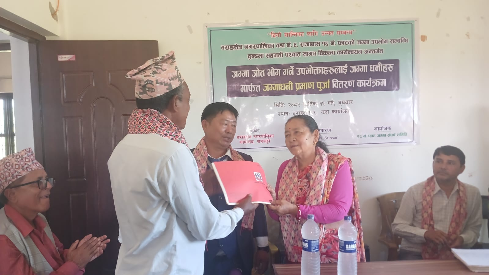 वराहक्षेत्रमा २९ घरधुरीले पाए लालपूर्जा: दशकौँ लामो जग्गा विवादको सुखद अन्त्य
